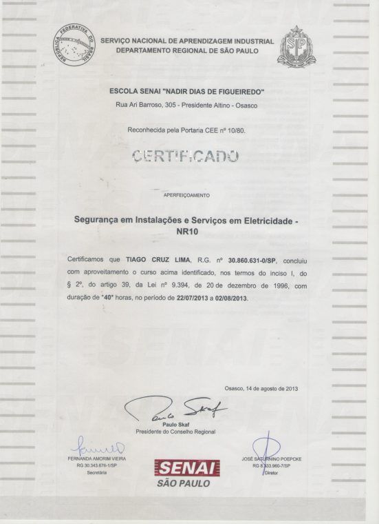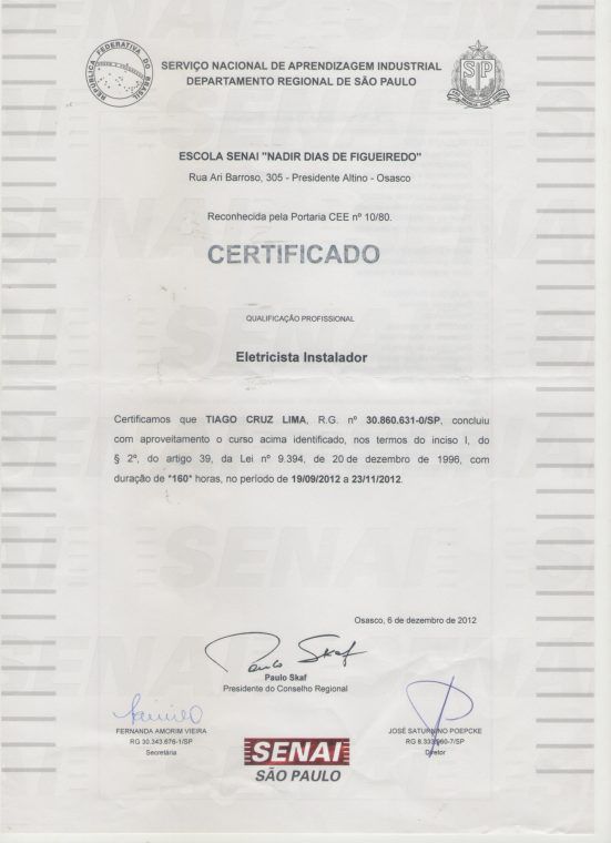É eletricista capacitado e formado pelo SENAI, especializado nas áreas, residêncial e comercial. Além dos serviços realizados, quando contratado, dá assessoria ao cliente na compra do melhor material (custo x benefício) para realização de uma obra com segurança e qualidade!